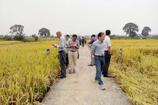 金秋十月,秋風拂面,“金稻”駭浪。10月12日,江西省晚稻生產(chǎn)試驗現(xiàn)場考察會在吉安縣召開。江西省農(nóng)作物品種審定委員會委員們在該縣晚稻生產(chǎn)試驗基地,對36個晚稻生產(chǎn)試驗品種進行逐個考察。