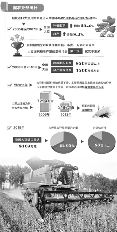 一方面是大豆產品需求快速上升,另一方面國產大豆產量增長有限,只好通過大量進口來滿足市場需求