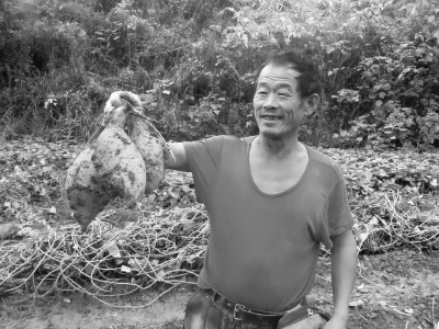圖為山東肥城種植戶展示收獲的脫毒甘薯。鄧秀峰攝