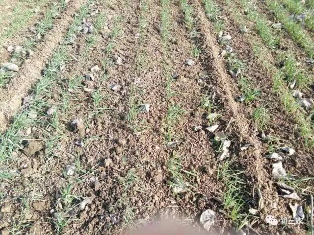 ▲鄲城縣種植農(nóng)樂百農(nóng)207的小麥出苗率過低長勢弱