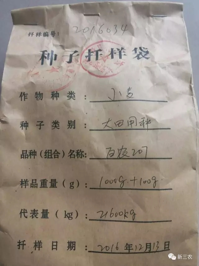 在省種子管理站的具體指導(dǎo)下,在鄲城縣麥種回收現(xiàn)場(chǎng),滑縣與鄲城縣農(nóng)業(yè)局種子抽樣員共同對(duì)這批“質(zhì)量糾紛麥種”農(nóng)樂百農(nóng)207進(jìn)行了種子扦樣取證,在當(dāng)事人張素華、毛振勇的雙方見證下完成簽字并封樣,按有關(guān)規(guī)定重新啟動(dòng)種子質(zhì)量鑒定法定程序。