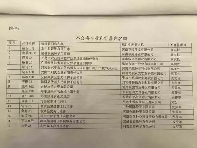 編者注:12月23日,種業(yè)商務(wù)網(wǎng)微信訂閱號(hào)刊登《【重磅】2016年河南省17家種企產(chǎn)品不合格!登海先鋒、隆平高科在列》一文,受到各微友高度關(guān)注,有微友致信、電話想進(jìn)一步了解所有品種和企業(yè),本網(wǎng)特多方面搜集整理,具體詳情如下: