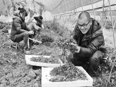 去年12月22日,在浙江省建德市大慈巖鎮(zhèn)新葉村大州畈田間,種植大戶葉華鋒正組織村民忙著采收中藥材三葉青金葫蘆,當?shù)仵r食市場價格每公斤1000元左右。