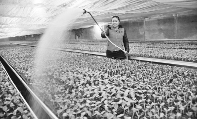 1月9日,安徽省碭山縣程莊鎮(zhèn)王屯村“百思農(nóng)”西瓜育苗專(zhuān)業(yè)合作社員工正在澆灌瓜苗。碭山縣是全國(guó)著名的大棚西瓜種植基地,目前已形成制種、育苗、種植、銷(xiāo)售一條龍的產(chǎn)業(yè)體系。近年來(lái),該縣積極引導(dǎo)果農(nóng)把西瓜產(chǎn)業(yè)由大做強(qiáng),加快由傳統(tǒng)種植向“種苗育繁一體化”的現(xiàn)代產(chǎn)業(yè)模式轉(zhuǎn)型,產(chǎn)業(yè)競(jìng)爭(zhēng)力顯著增強(qiáng),“百思農(nóng)”西瓜育苗專(zhuān)業(yè)合作社培育的優(yōu)質(zhì)西瓜種苗遠(yuǎn)銷(xiāo)緬甸、老撾等東南亞國(guó)家。 崔猛攝