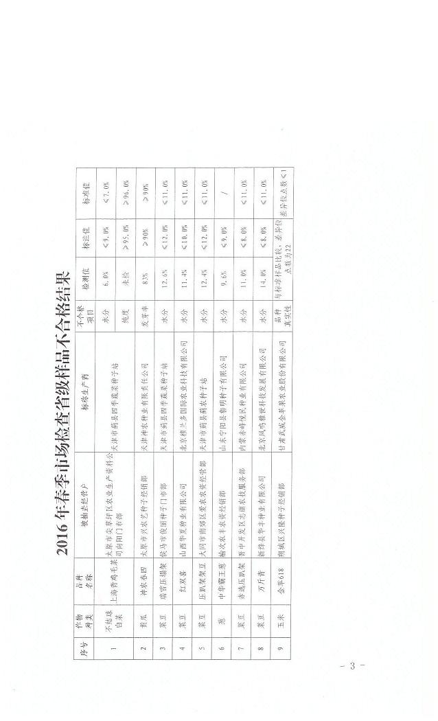 山西農(nóng)業(yè)廳2016春季農(nóng)作物種子專項檢查通報