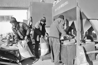 精選加工工作。面對銷售期訂單量大的實際情況,該公司搶前抓早,積極組織工人開展大豆種子精選作業(yè),滿足農(nóng)戶今年種植需要。圖為工人們正在進行精選、裝袋作業(yè)。徐玉國攝
