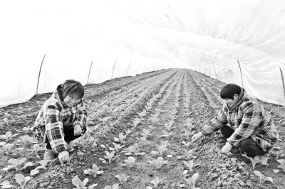 。埇橋區(qū)是全省蔬菜大區(qū),全年種植蔬菜面積58萬畝,其中設(shè)施蔬菜面積達23萬畝。圖為西二鋪鄉(xiāng)永盛蔬菜專業(yè)合作社職工正在管理新移栽的蔬菜。 張成伍攝