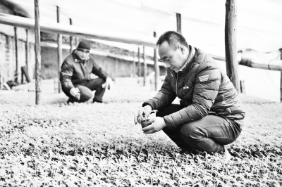過去,新建村一直是簡(jiǎn)單的裸地種植,地到冬天就荒了,村民收入始終上不去。為了扭轉(zhuǎn)這一局面,近年來(lái),新建村大力發(fā)展棚室蔬菜種植,目前全村677戶農(nóng)戶中有511戶從事棚室蔬菜生產(chǎn),全村棚室蔬菜種植面積達(dá)132萬(wàn)平方米。2016年,棚室蔬菜種植讓全村人均增收近2萬(wàn)元。圖為2月15日,種植戶在查看大棚中的秧苗長(zhǎng)勢(shì)。 新華社記者王建威攝