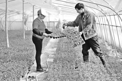 2月14日,浙江省建德市更樓街道石嶺村蔬菜育秧大戶林紹基與妻子在溫室大棚里,忙著侍弄辣椒、茄子、苦瓜、香瓜等10個(gè)品種的秧苗,這批秧苗共計(jì)10多萬(wàn)株。據(jù)悉,一月初以來(lái),林紹基搭起4畝溫室大棚,利用穴盤,有機(jī)質(zhì)等設(shè)施,建起標(biāo)準(zhǔn)化的蔬菜育秧基地,今年可為當(dāng)?shù)夭宿r(nóng)提供20多萬(wàn)株優(yōu)質(zhì)秧苗。 寧文武攝