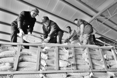 江蘇農(nóng)墾淮海農(nóng)場(chǎng)春耕備種工作全面展開,種子市場(chǎng)進(jìn)入銷售旺季。在大華種業(yè)淮海分公司種子成品車間內(nèi),各品種水稻種子已備足。圖為客戶在裝運(yùn)種子。