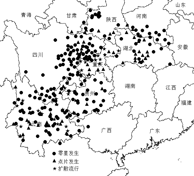 四川省已在沿江河和盆周的21市(州)82個(gè)縣發(fā)生,同比增加19個(gè)縣;累計(jì)發(fā)生面積50.2萬畝,同比增加48%,比2周前增加2倍。目前,大部麥區(qū)處于零星發(fā)生狀態(tài),廣元、遂寧、南充等地點(diǎn)片發(fā)生。