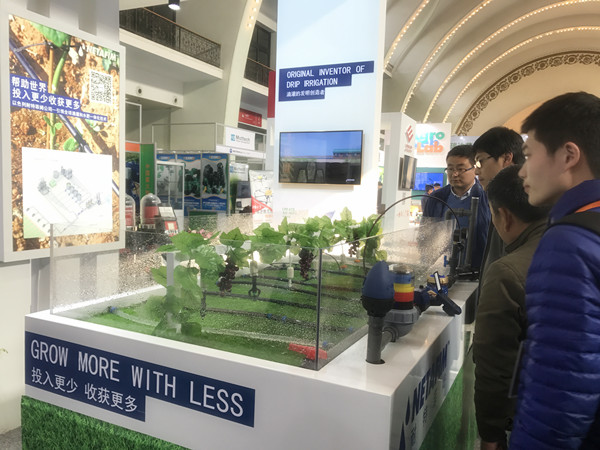 耐特菲姆展臺(tái)前,觀眾們駐足參觀噴灌設(shè)備 楊迪攝