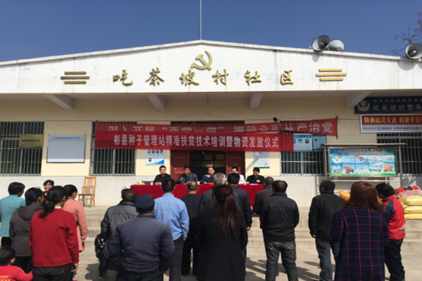 4月6日,彬縣種子管理站在新民鎮(zhèn)吃茶坡村舉行了精準(zhǔn)扶貧技術(shù)培訓(xùn)暨物資發(fā)放儀式。