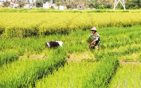“以前是種水稻,現(xiàn)在是種水稻種子啦!”在陵水黎族自治縣椰林鎮(zhèn)長水嶺下,連片的稻田猶如一個澄黃的湖泊,看上去和普通稻田沒有區(qū)別,正在田里耕種的農(nóng)民王秋應(yīng)告訴記者,這里種水稻不是為賣大米,而是為了賣水稻種子。