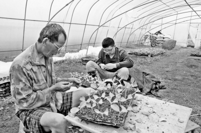 該園擁有1200余畝共800余個蔬菜、西瓜大棚,為了將優(yōu)質西瓜年年種下去,來自洞口縣的10余名菜農探索高效生態(tài)嫁接法,將麒麟西瓜苗心葉插入南瓜苗上,轉入塑料棚里讓其結合生長,達到年年可種,且西瓜個頭更大、口感更甜、產量更高的目的。據悉,去年至今,邵陽縣科協(xié)將這個基地西瓜園立為科普示范園,200個西瓜大棚都實施了該技術嫁接,均已獲得成功,并向周邊及全市西瓜基地推廣。 黎建成錢沸濤攝