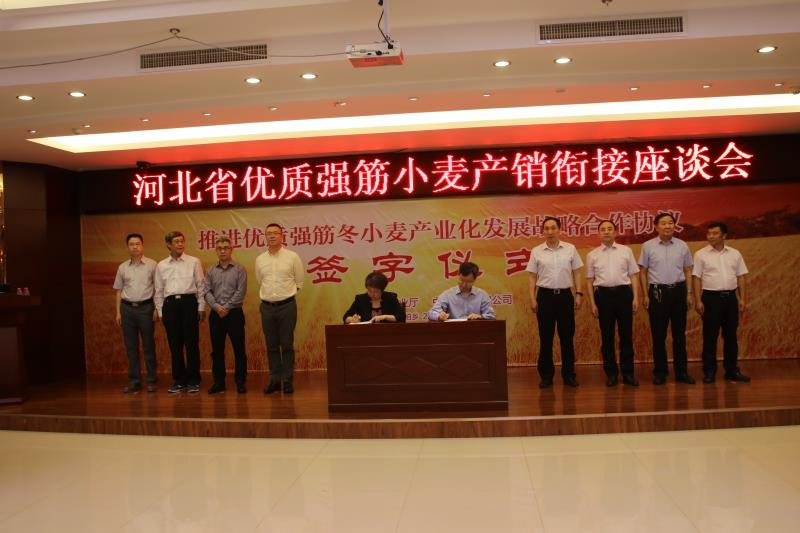 本網(wǎng)訊(記者 孫魯威)5月12日,河北省農(nóng)業(yè)廳與中糧貿(mào)易有限公司在柏鄉(xiāng)縣舉行了“推進(jìn)優(yōu)質(zhì)強(qiáng)筋冬小麥產(chǎn)業(yè)化發(fā)展戰(zhàn)略合作協(xié)議”簽字儀式。這是雙方落實(shí)中央一號(hào)文件關(guān)于小麥生產(chǎn)要確??诩Z絕對(duì)安全,重點(diǎn)發(fā)展強(qiáng)筋弱筋小麥的精神,在我國(guó)冬小麥主產(chǎn)區(qū)實(shí)施的創(chuàng)新之舉。根據(jù)協(xié)議,河北省農(nóng)業(yè)廳與中糧貿(mào)易有限公司將重點(diǎn)圍繞河北省優(yōu)質(zhì)強(qiáng)筋冬小麥品種篩選研發(fā)、綠色高效生產(chǎn)模式集成示范、規(guī)模化標(biāo)準(zhǔn)化生產(chǎn)基地建設(shè)和全產(chǎn)業(yè)鏈運(yùn)營(yíng)等4個(gè)方面開展合作。