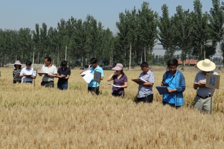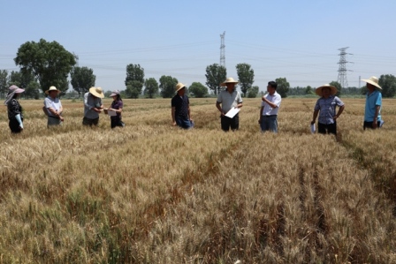 6月9日,天津市種子管理站組織品種審定委員會糧食專業(yè)組的部分委員對我市2016-2017年度冬小麥品種區(qū)域試驗、生產(chǎn)試驗;2017年春小麥品種區(qū)域試驗、生產(chǎn)試驗及京津冀一體化生產(chǎn)試驗進行考察。委員們依次考察了寶坻區(qū)種子管理站試驗點、武清區(qū)種子管理站試驗點(張辛莊)和天津市農(nóng)作物研究所周莊試驗點的試驗,各試點試驗人員向委員們詳細介紹了小麥參試品種的整體管理等情況。在考察過程中,各位委員客觀、公正的評價各參試品種,認真記錄各參試品種的田間表現(xiàn),為我市今年冬春小麥品種審定工作提供科學、可靠的依據(jù)。