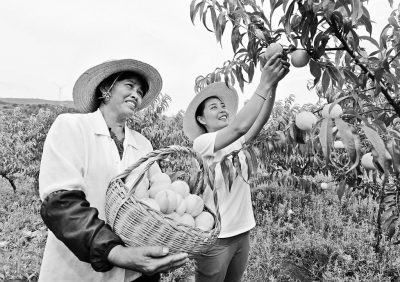 7月6日,安徽省馬鞍山市連片種植的良種黃桃“黃金一號”俏滿枝頭。近年來,馬鞍山市大力發(fā)展黃桃種植業(yè),代表性新品種“黃金一號”肉質(zhì)肥厚細(xì)嫩、口感甘甜多汁,深受消費(fèi)者歡迎。目前“黃金一號”的平均畝產(chǎn)已經(jīng)達(dá)到1300公斤,畝效益2萬多元。據(jù)了解,馬鞍山市為優(yōu)質(zhì)黃桃注冊了“仙蹤綠營”商標(biāo),并引進(jìn)江浙滬地區(qū)的優(yōu)質(zhì)食品加工企業(yè),還吸引了大量游人前來采摘品嘗。圖為果農(nóng)正在采摘“黃金一號”黃桃。 張玲歐宗濤攝