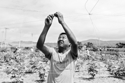 7月2日,在浙江省玉環(huán)市上正果蔬專業(yè)合作社里,負(fù)責(zé)人陳蘇根和社員們正一起為無花果覆蓋防護(hù)網(wǎng)。