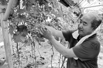 古人寫詩贊西瓜:“下咽頓清煙火氣,入齒便有冰雪聲。”西瓜味甘多汁、生津止渴,可謂是夏季最受歡迎的水果之一。然而吐籽麻煩、上市時(shí)間短,也有人因?yàn)檫@些局限望“瓜”卻步。為此,種西瓜的花樣越來越多,無籽的、小個的、方形的、早熟的……特色西瓜紛紛上市。本期就帶您嘗一嘗各地的那些“明星瓜”,看看你的要求滿足了沒? ——編者 韓玉波在葡萄園里打理果穗。楊發(fā)鵬徐升川攝