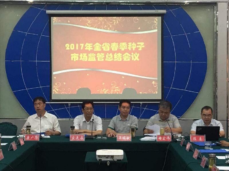 2017年7月11日-12日,全省春季農(nóng)作物種子市場(chǎng)監(jiān)管總結(jié)會(huì)議在信陽(yáng)召開(kāi)。省種子管理站宋連啟副站長(zhǎng),信陽(yáng)市農(nóng)業(yè)局吳瑞敏副局長(zhǎng)出席會(huì)議并致辭,全省18個(gè)省轄市、10個(gè)直管縣(市)種子管理站、農(nóng)業(yè)執(zhí)法隊(duì)負(fù)責(zé)人參加了會(huì)議。