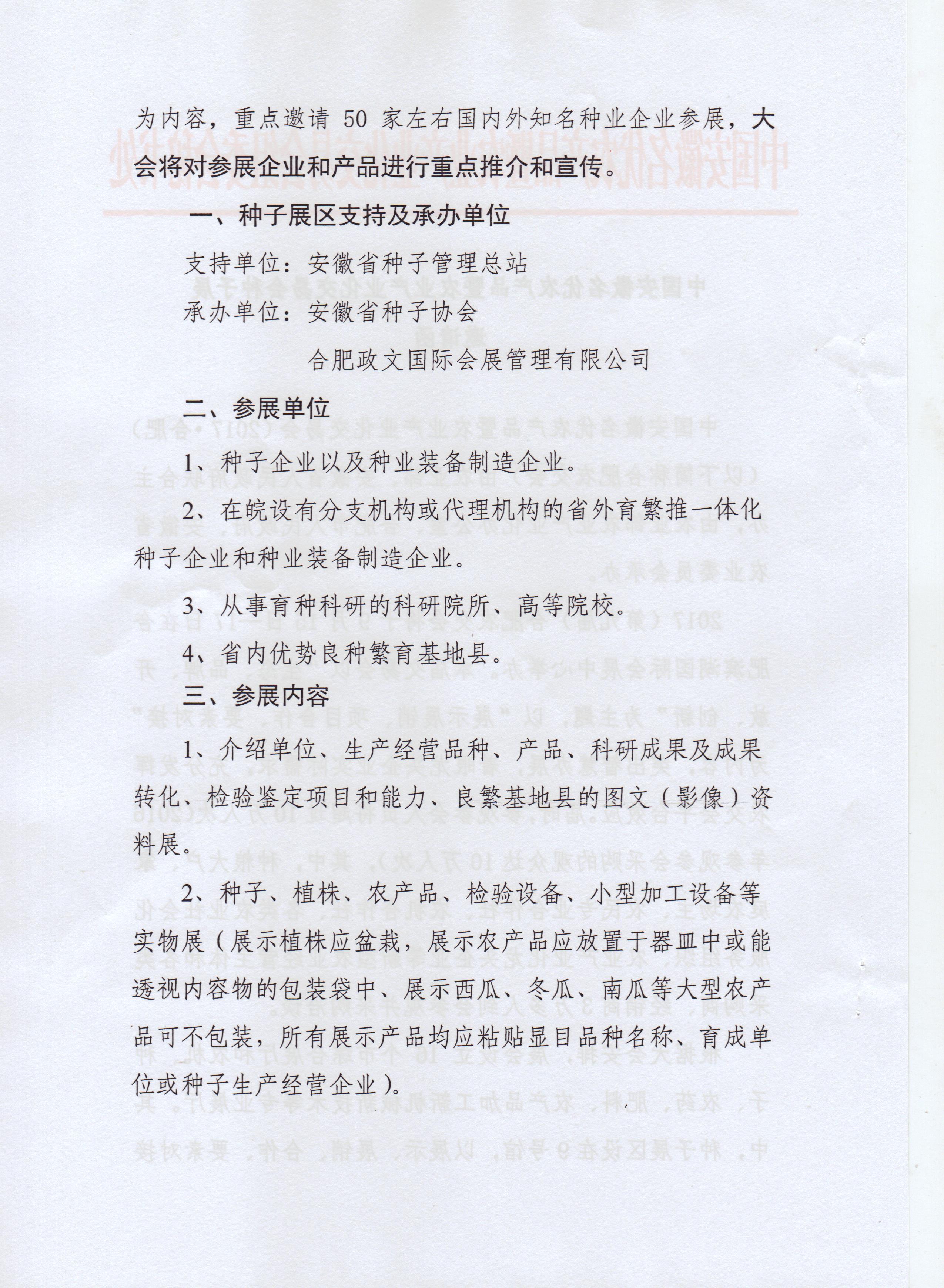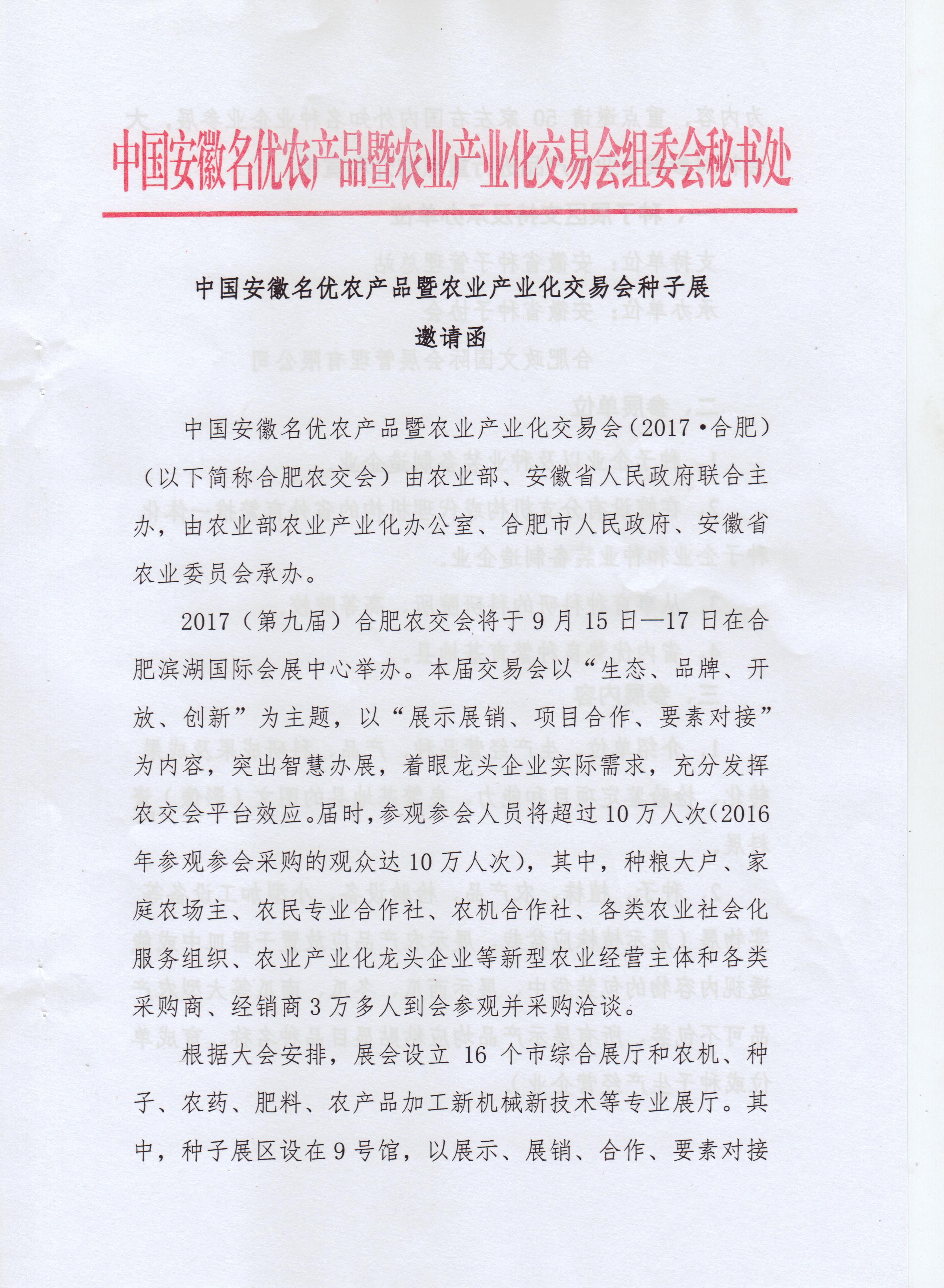 安徽名優(yōu)農(nóng)產(chǎn)品暨農(nóng)業(yè)產(chǎn)業(yè)化交易會種子展邀請函