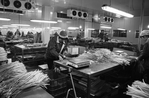 ▲美東農(nóng)業(yè)的蔬果加工車間里,工人們正在分揀凈選、包裝蔬菜。
