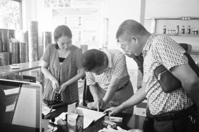 6月27日,湖北省植??傉竟ぷ魅藛T在荊州市農(nóng)資大市場(chǎng)檢查農(nóng)藥銷售臺(tái)賬。(資料圖)