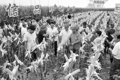 日前,在安徽省宿州市埇橋區(qū)順河鄉(xiāng)風(fēng)光家庭農(nóng)場,來自江蘇省徐州市以及安徽省蚌埠、淮北、靈璧、泗縣等黃淮地區(qū)玉米主產(chǎn)區(qū)的近200名種糧大戶和種子經(jīng)銷商們在觀摩春種“華皖616”等系列玉米品種的產(chǎn)量和抗災(zāi)性能表現(xiàn)。由埇橋區(qū)十屆政協(xié)委員、殘疾人楊風(fēng)光創(chuàng)立的風(fēng)光家庭農(nóng)場,每年都與知名種子企業(yè)合作,引進(jìn)優(yōu)良玉米品種試種示范百余畝,每到收獲前夕,周邊地區(qū)的種糧大戶、種子經(jīng)銷商都會慕名前來參觀,以確定明年的品種選擇。圖為種糧大戶和經(jīng)銷商在田間觀摩。