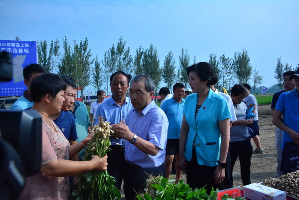 與會(huì)人員實(shí)地察看了我院經(jīng)濟(jì)作物研究所在正陽(yáng)縣付寨鄉(xiāng)章寨村建立的2000畝優(yōu)質(zhì)高油酸花生豫花37標(biāo)準(zhǔn)化生產(chǎn)示范基地。高油酸花生新品種豫花37,是我院花生研究團(tuán)隊(duì)根據(jù)市場(chǎng)需求尤其是加工產(chǎn)業(yè)發(fā)展的要求,培育的又一個(gè)優(yōu)質(zhì)品種,該品種綜合農(nóng)藝性狀優(yōu)良,油酸含量高達(dá)77—81.3%,適宜于在河南、山東、遼寧和新疆維吾爾自治區(qū)等?。▍^(qū))種植,有著廣闊的推廣轉(zhuǎn)化潛力!