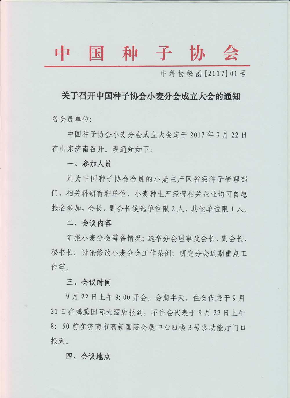 關(guān)于召開中國(guó)種子協(xié)會(huì)小麥分會(huì)成立大會(huì)的通知
