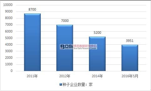 2011-2016年中國(guó)種業(yè)企業(yè)數(shù)量情況
