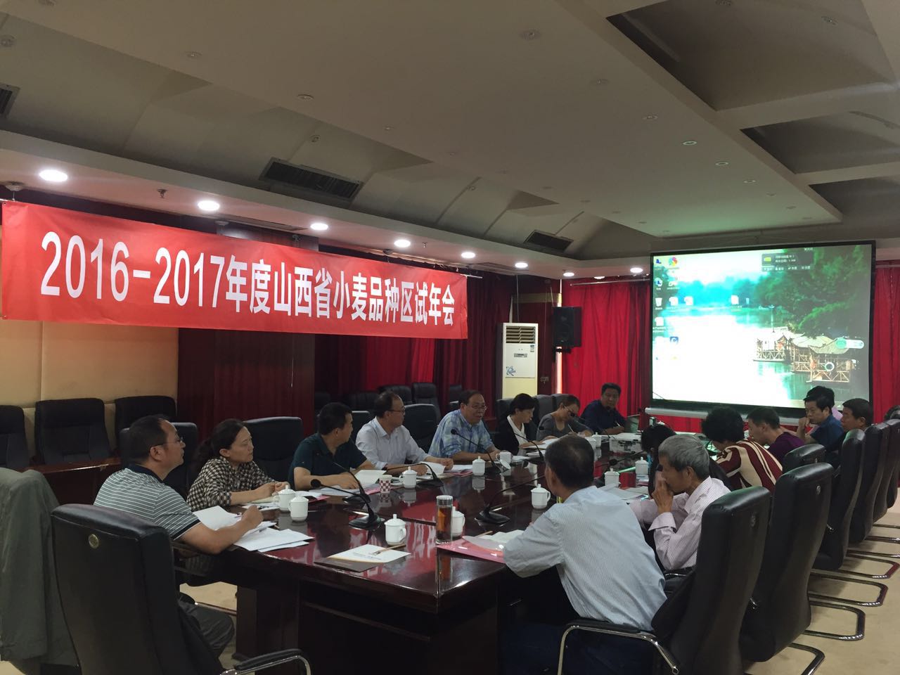 區(qū)試年會(huì)對2016-2017年度全省小麥試驗(yàn)進(jìn)行了全面總結(jié),認(rèn)真討論制定了2017-2018年度全省小麥試驗(yàn)方案,落實(shí)了試驗(yàn)任務(wù)。為適應(yīng)我省農(nóng)業(yè)有機(jī)旱作和供給側(cè)結(jié)構(gòu)性改革需要,盡快篩選抗旱節(jié)水小麥品種,我們對南部水地和中部水地組試驗(yàn)的田間管理措施進(jìn)行了改進(jìn),增加了節(jié)水灌溉具體要求:越冬前限一水,越冬后限兩水。