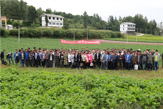 與會成員參觀了位于威寧縣草海鎮(zhèn)卯關(guān)村的“中蘿一號”推廣示范基地,現(xiàn)場觀摩“中蘿一號”及對照品種的田間試驗(yàn)情況,并給予了肯定。參觀結(jié)束后,中國農(nóng)科院特色蔬菜資源與遺傳改良創(chuàng)新團(tuán)隊(duì)首席科學(xué)家梅時(shí)勇研究員就 “中蘿一號”的推廣示范作了培訓(xùn)講座,對“中蘿一號”等高山蘿卜品種的優(yōu)勢、種植技術(shù)、病蟲害防控以及生產(chǎn)銷售等方面的問題進(jìn)行了講解,針對生產(chǎn)過程中的具體問題與種植大戶們進(jìn)行了交流指導(dǎo)。