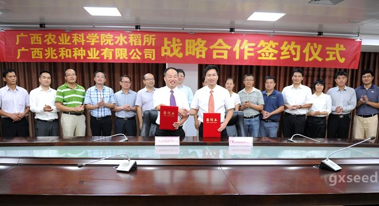廣西種子管理局祁廣軍局長(zhǎng)表示,為加快現(xiàn)代種業(yè)發(fā)展,廣西種子管理部門千方百計(jì)做“放管服”,為企業(yè)發(fā)展提供全方位的保姆式服務(wù)。廣西兆和種業(yè)有限公司在廣西種子管理局的支持和幫助下,堅(jiān)持推動(dòng)科企合作,公司發(fā)展迅速,全國(guó)信用骨干企業(yè)排名達(dá)到第12位,打造了“政科企”合作的典范。廣西水稻研究所是我國(guó)西南水稻育種實(shí)力最強(qiáng)的科研院所,桂兩優(yōu)2號(hào)、特優(yōu)582和豐田優(yōu)553等品種通過(guò)農(nóng)業(yè)部超級(jí)稻品種認(rèn)定,與廣西兆和種業(yè)強(qiáng)強(qiáng)聯(lián)合將有助于加快推動(dòng)我區(qū)優(yōu)質(zhì)稻品種的選育和推廣。