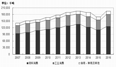 中國(guó)玉米需求量變化(2007-2016)