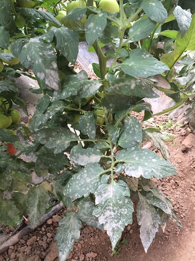 近期,由于連續(xù)的多雨陰濕天氣,互助縣塘川設(shè)施蔬菜基地日光溫室番茄不同程度發(fā)生白粉病。主要危害葉片,葉面初現(xiàn)白色霉點(diǎn),散生,后逐漸擴(kuò)大成白色粉斑,并互相聯(lián)合為大小不等的白粉斑,嚴(yán)重時(shí)整個(gè)葉面被白粉所覆蓋。葉柄,莖桿,果實(shí)等部位也可染病,病部表面出現(xiàn)白粉狀霉斑。白粉病會(huì)導(dǎo)致番茄葉片發(fā)黃早衰,果實(shí)染病后落果嚴(yán)重,影響產(chǎn)量和品質(zhì),應(yīng)積極進(jìn)行防治。白粉病防治要“早、狠、準(zhǔn)”。加強(qiáng)棚室溫濕度管理,避免植株葉面結(jié)露。發(fā)病初期,可選用45%的百菌清煙劑,每667平方米250克熏防。也可選用杜邦福星,世高等內(nèi)吸性藥劑噴霧防治。