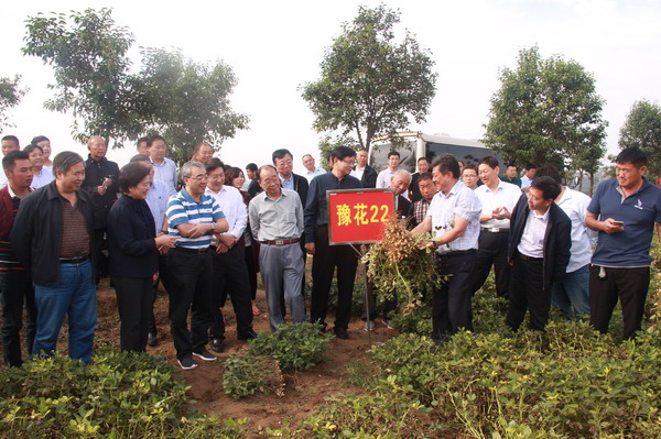 省農(nóng)業(yè)廳種植業(yè)處,院推廣處、經(jīng)作所、資環(huán)所等單位的領(lǐng)導(dǎo)和專家,永城市有關(guān)部門領(lǐng)導(dǎo)、花生種植大戶代表,中國科學(xué)報、河南科技報等媒體記者以及豫研公司代表等200余人參加了現(xiàn)場觀摩會。