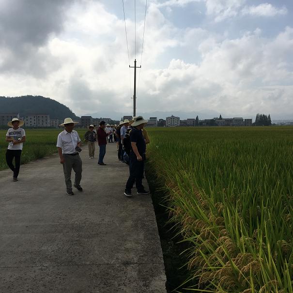 會議先實(shí)地考察省級展示示范基地---天臺縣水稻新品種展示示范基地。示范基地位于天臺縣平橋鎮(zhèn)溪邊張村。基地展示各科研單位和種子企業(yè)的優(yōu)良水稻品種24個(gè),試驗(yàn)品種25個(gè),示范水稻品種2個(gè),與會代表對示范方的水稻長相長勢給于了高度評價(jià)。