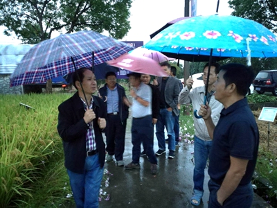 在基地,錢前代表中國水稻所向廖翠猛一行詳細介紹了中嘉8號、中嘉優(yōu)6號、中嘉優(yōu)9號、嘉優(yōu)中科3號、嘉優(yōu)中科2號、深兩優(yōu)7248等國家973分子育科項目最新育成品種的田間表現(xiàn)。廖翠猛仔細察看了基地種植的水稻新品種的表現(xiàn),對新品種的株型、產(chǎn)量水平等表示充分肯定,認為這些品種不僅反映出浙江省領先全國的水稻育種水平,也體現(xiàn)了展示基地很高的管理和技術水平,同時認為基地在國內率先應用二維碼技術充分展現(xiàn)展示品種信息的做法是一個創(chuàng)新,方便了參觀者即時全面了解參展品種有關情況。
