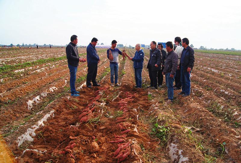 陜西省合陽縣黑池鎮(zhèn)把紅薯產(chǎn)業(yè)作為當(dāng)?shù)胤N植主導(dǎo)產(chǎn)業(yè),在施肥上,黑池鎮(zhèn)選擇洛陽肥源生物科技有限公司生產(chǎn)的骨膠原生物菌肥,種出的紅薯個大形好、顏色紅艷、干綿香甜,畝產(chǎn)可達上萬斤。據(jù)了解,骨膠原生物菌肥是一種長效、環(huán)保的新型有機肥料,具有極其顯著的土壤調(diào)理功能,用量小、產(chǎn)量高,還可提高農(nóng)產(chǎn)品品質(zhì)且上市早,生產(chǎn)全程中無農(nóng)藥種植。圖為日前,技術(shù)專家一行現(xiàn)場對比紅薯施用各種肥料效果。本報特約記者 李亞利 攝