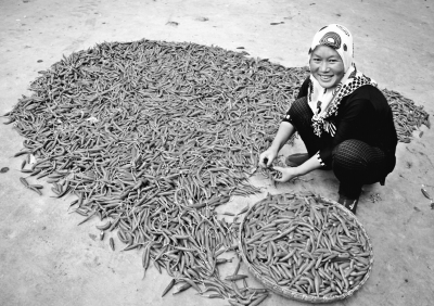 今年貴州省威寧自治縣中水鎮(zhèn)銀水村種植的單生指天椒喜獲豐收,椒農(nóng)們忙著采摘、裝袋、銷售,不亦樂(lè)乎,紅彤彤的單生指天椒為群眾致富添了新門路。據(jù)椒農(nóng)們介紹,單生指天椒產(chǎn)量高,平均畝產(chǎn)達(dá)1200多公斤,鮮椒按照每公斤2.4元的價(jià)格全部由經(jīng)銷商收購(gòu),畝產(chǎn)值超過(guò)3000元。 劉軍林?jǐn)z