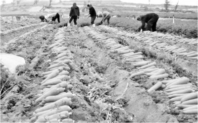 圖為種植戶正在收獲采用了丸?;瘷C(jī)播的胡蘿卜。洪金條攝