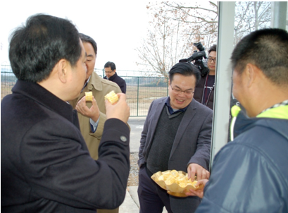 馬曉暉副書(shū)記等有關(guān)領(lǐng)導(dǎo)參觀了種科院院區(qū),并視察了甜玉米‘金銀208’秋季播種期試驗(yàn)現(xiàn)場(chǎng),品嘗了‘金銀208’的鮮穗,對(duì)該品種的品質(zhì)表示贊賞。