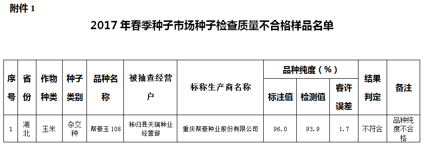 1. 2017年春季種子市場種子檢查質(zhì)量不合格樣品名單