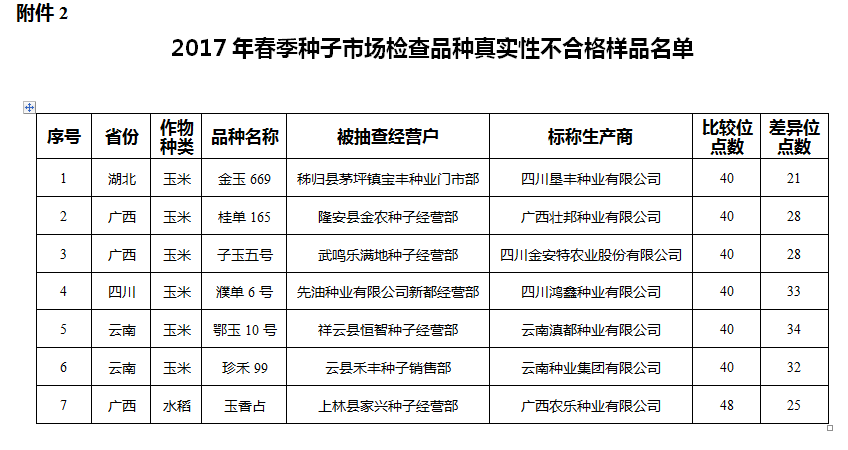 2.2017年春季種子市場檢查品種真實性不合格樣品名單