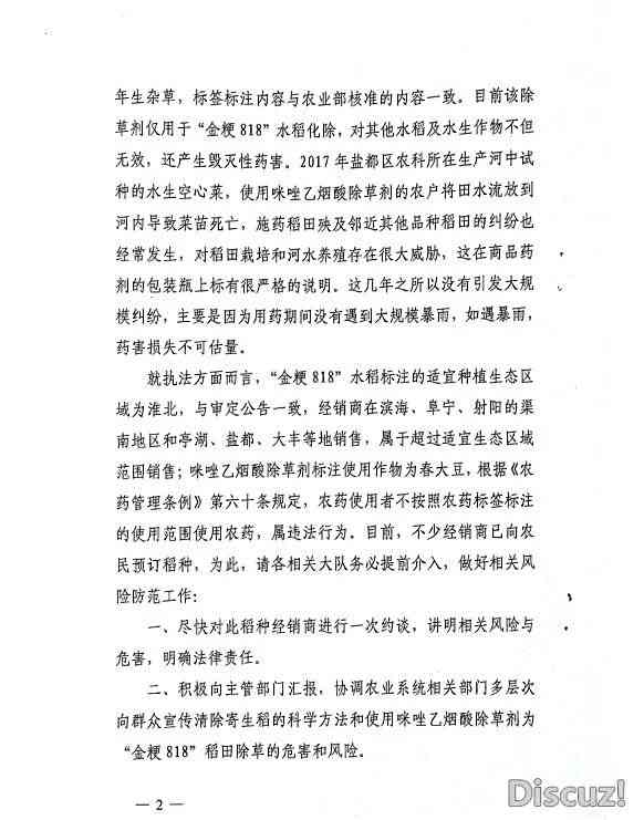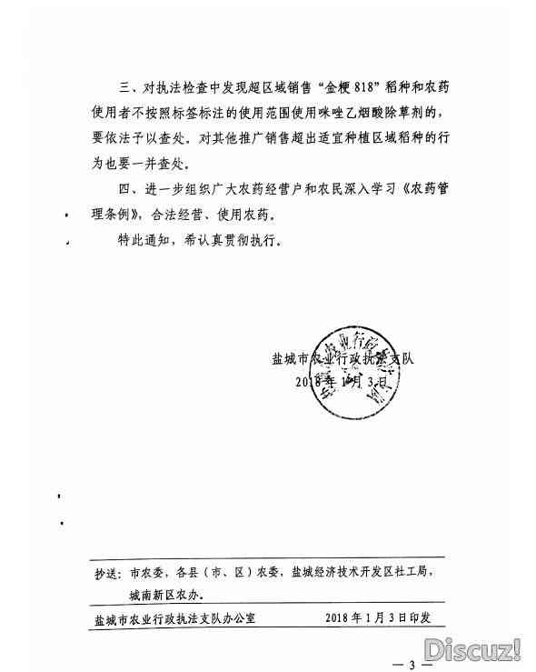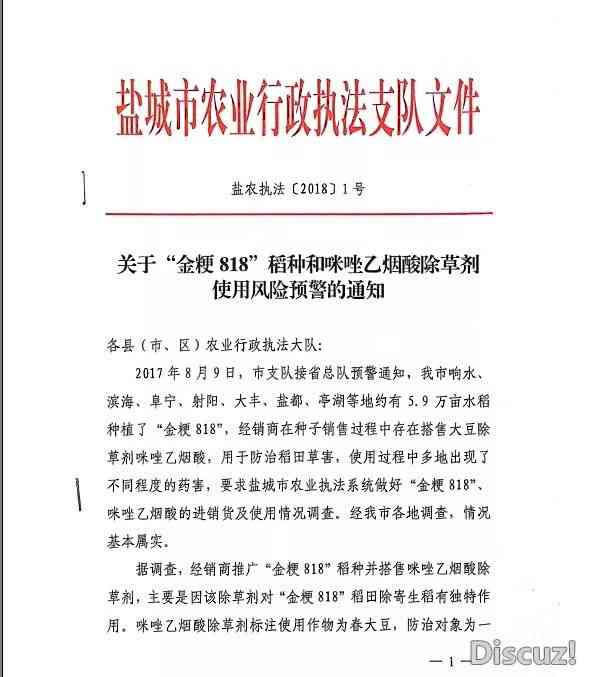 特別要強(qiáng)調(diào)是,“金粳818”水稻審定的適宜種植生態(tài)區(qū)域?yàn)榛幢?,?jīng)銷商在我市經(jīng)銷該品種屬個體行為,并超過該品種的適宜生態(tài)種植區(qū)域范圍,既不符合農(nóng)業(yè)部門的主推品種要求,更與市委、市政府培育興化大米品牌的決策部署不相符,對違法經(jīng)營“金粳818”和違法使用咪唑乙煙酸除草劑的行為,我局將加大打擊力度,加重行政處罰,切實(shí)維護(hù)農(nóng)戶合法權(quán)益。該品種是由周邊鹽城地區(qū)傳入我市,鹽城市農(nóng)業(yè)行政執(zhí)法支隊及我局均分別于元月3日、元月8日,下發(fā)了種植該稻種的風(fēng)險提示的緊急通知,希望廣大網(wǎng)友及農(nóng)戶要相信科學(xué),不信謠、不傳謠,并及時舉報該違法經(jīng)營行為,共同維護(hù)興化良好的市場秩序。