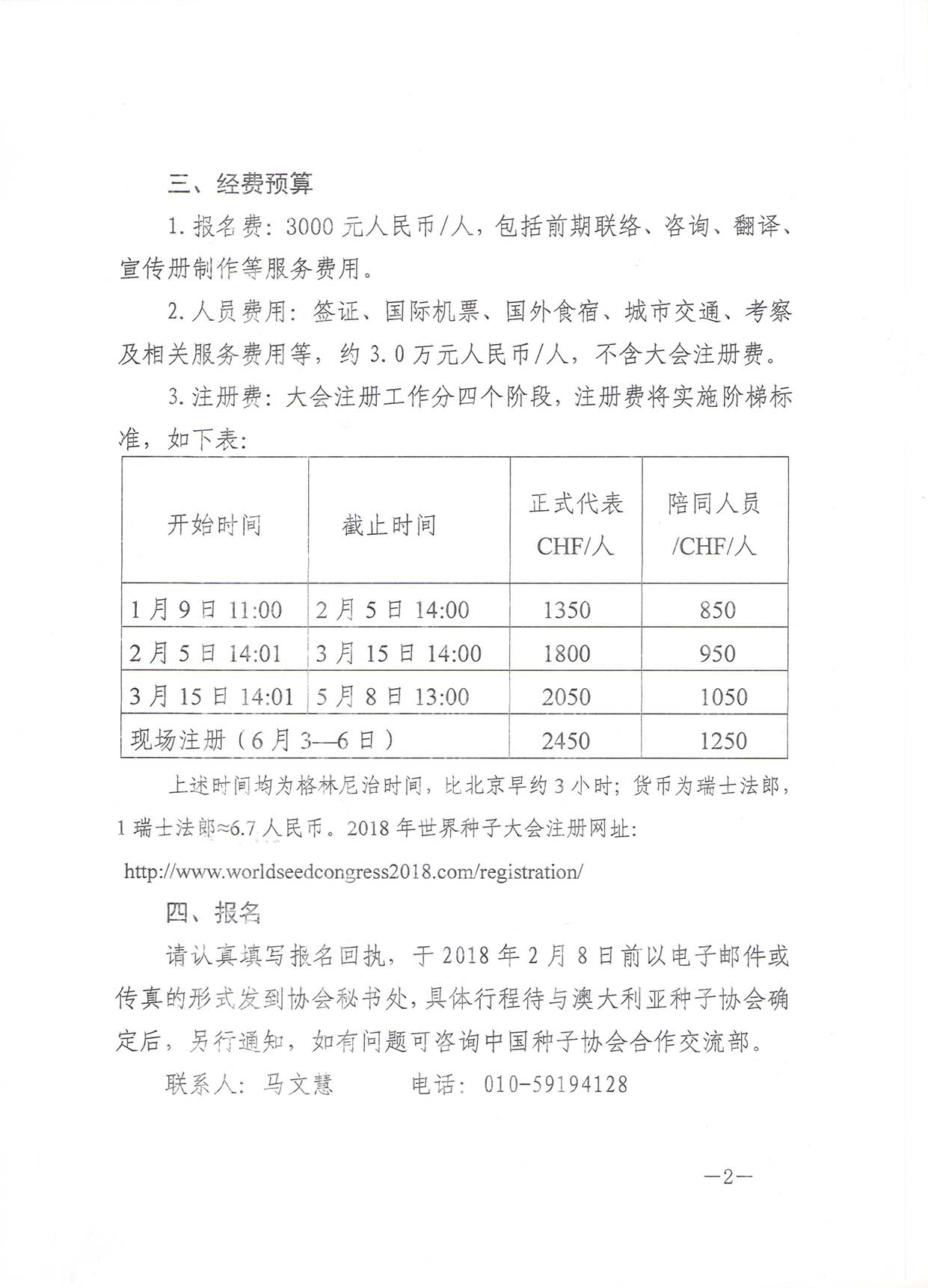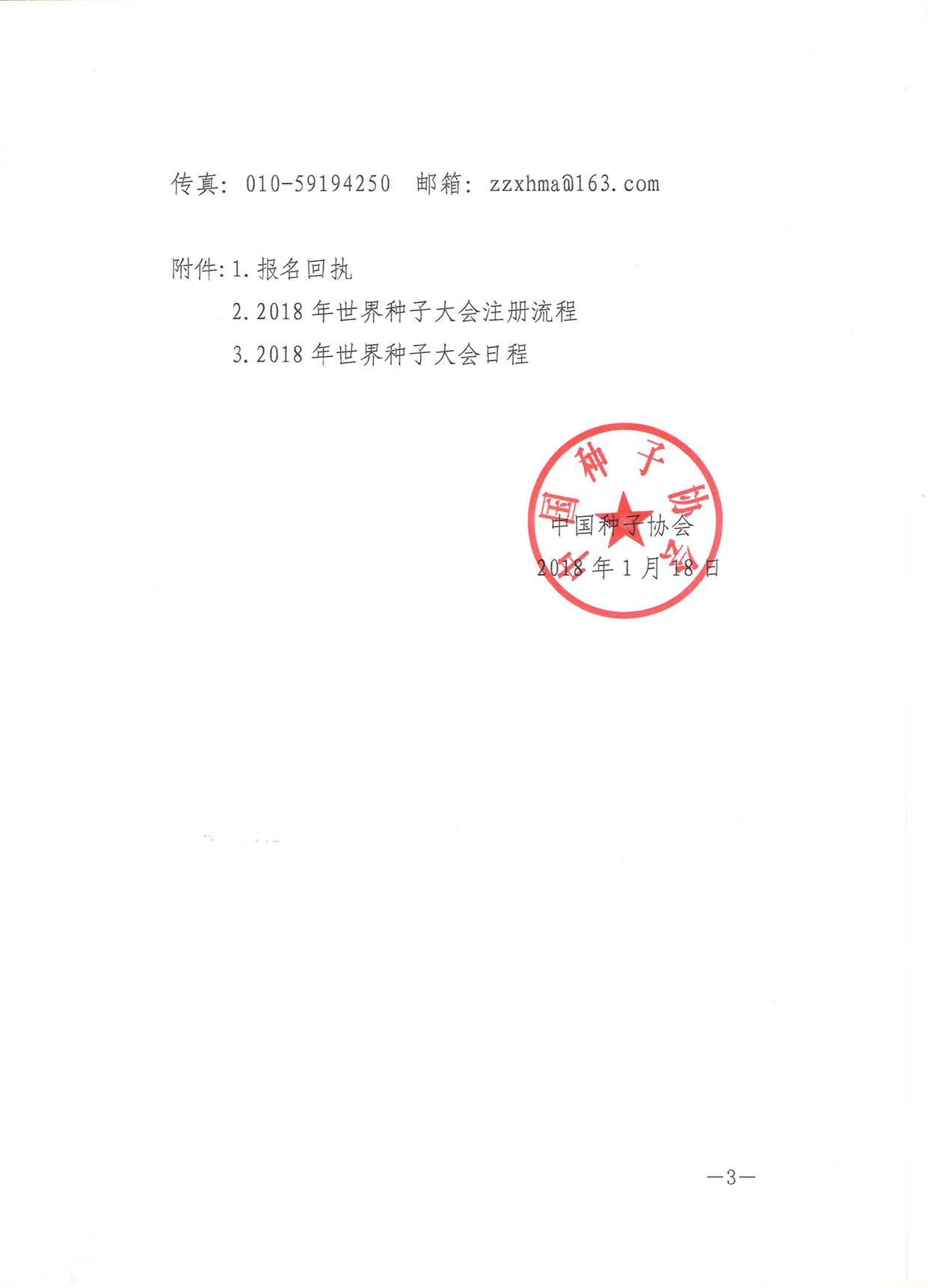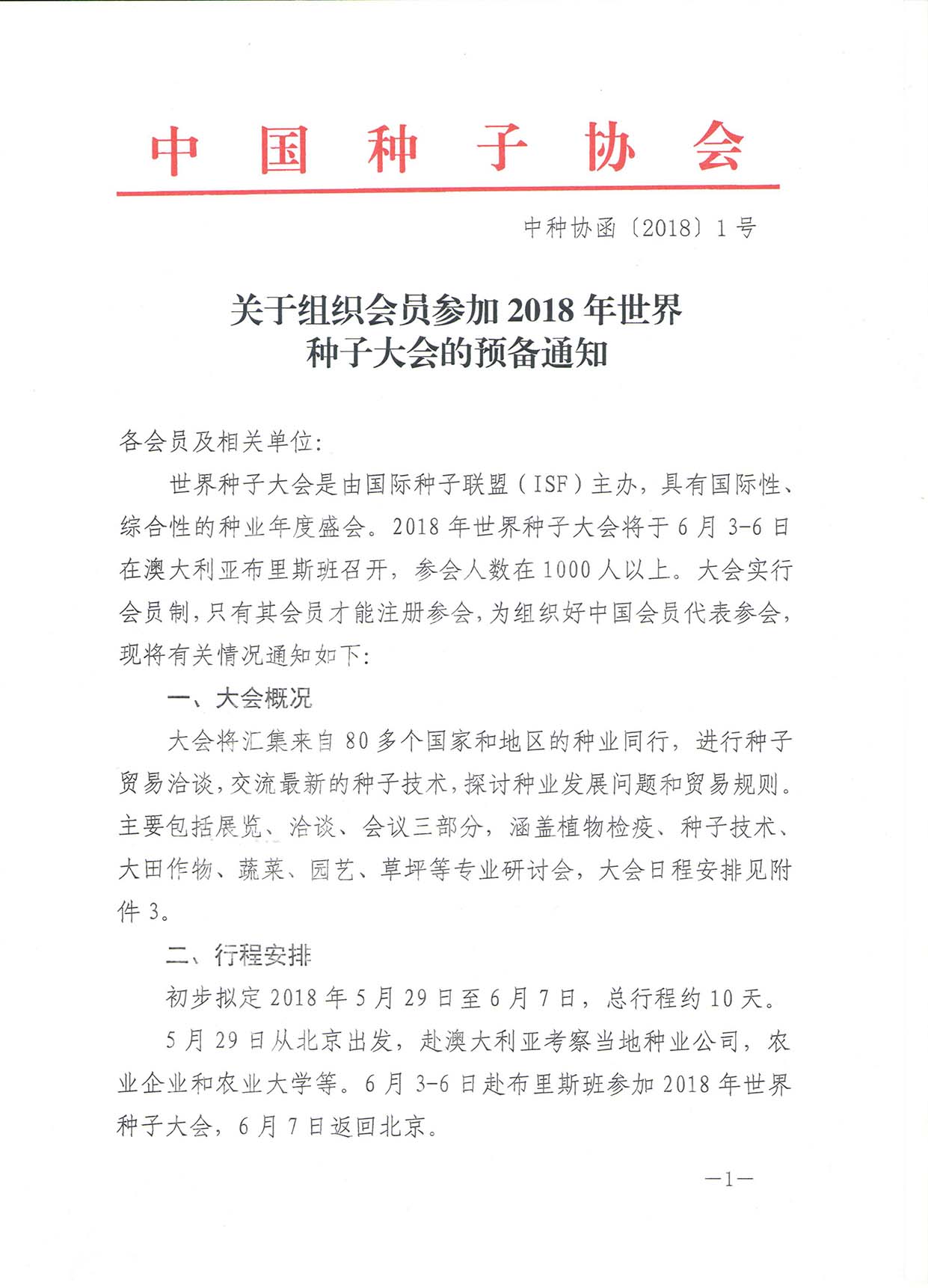 關(guān)于組織會員參加2018年世界種子大會的預備通知