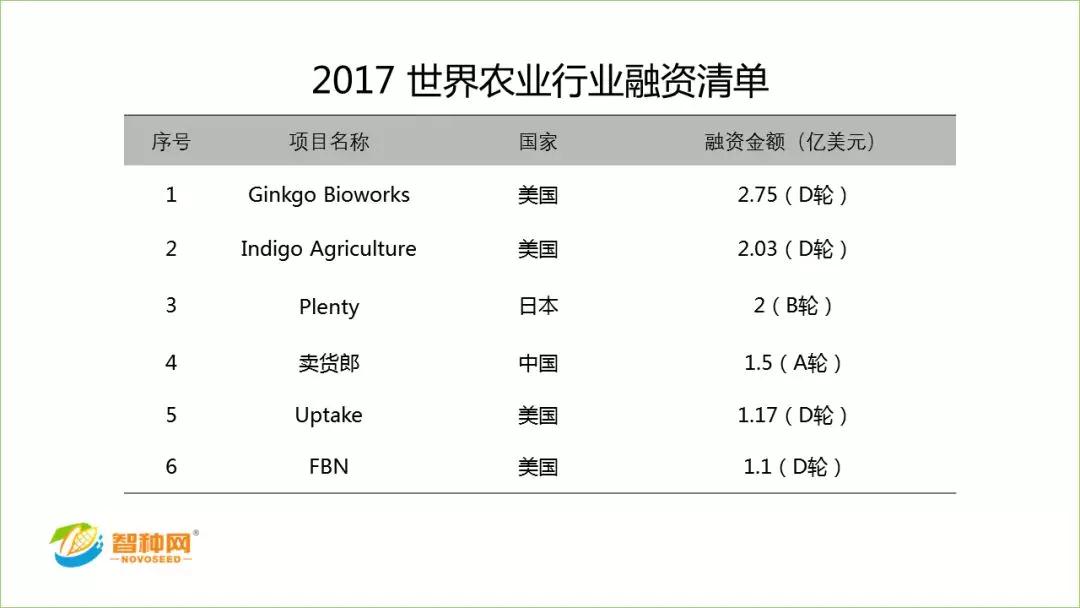 Indigo Agriculture(靛藍(lán)農(nóng)業(yè)) 2017 年 12 月初宣布完成 2.03 億美元的 D 輪融資。這輪融資將支持靛藍(lán)的全球商業(yè)業(yè)務(wù)擴(kuò)展,以及對植物微生物群體的持續(xù)投入以及軟件和數(shù)據(jù)工具的開發(fā)。
