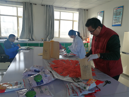 自1月18日起, 21名檢查人員分成6個組,分別赴北京、甘肅、寧夏、遼寧、黑龍江、河北、河南、山西、山東等9個省市地,對31家種子企業(yè)進行檢查。檢查人員審閱了企業(yè)的資質(zhì)證件、生產(chǎn)經(jīng)營檔案等文件材料,查看了種子包裝、標簽和使用說明,檢查了所經(jīng)營品種審定、權(quán)屬和備案情況,也實地檢查了企業(yè)加工、庫房和檢驗室的設施設備,并扦取了種子樣品。各組檢查人員針對檢查過程中發(fā)現(xiàn)的問題向企業(yè)提出責令改正,針對企業(yè)生產(chǎn)存在的安全隱患提出了良好的建議。